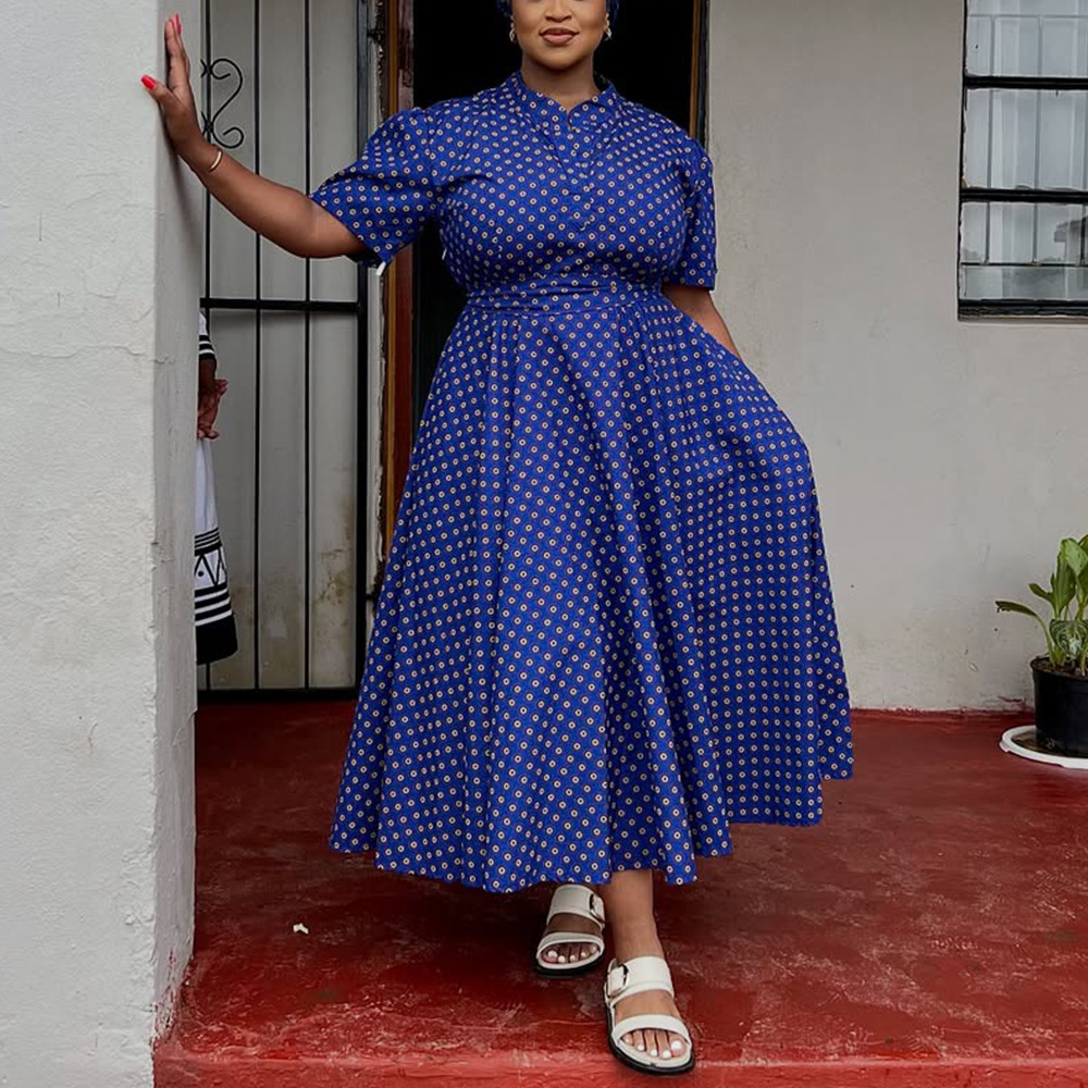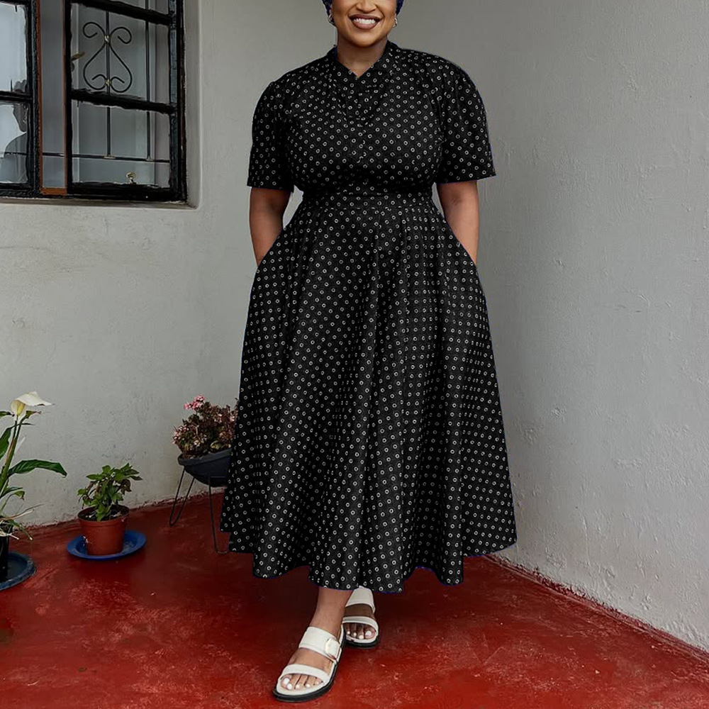 Women Clothing Summer Short Sleeve V neck Bohemian Polka Dot Print Dress plus Size Maxi Dress Women