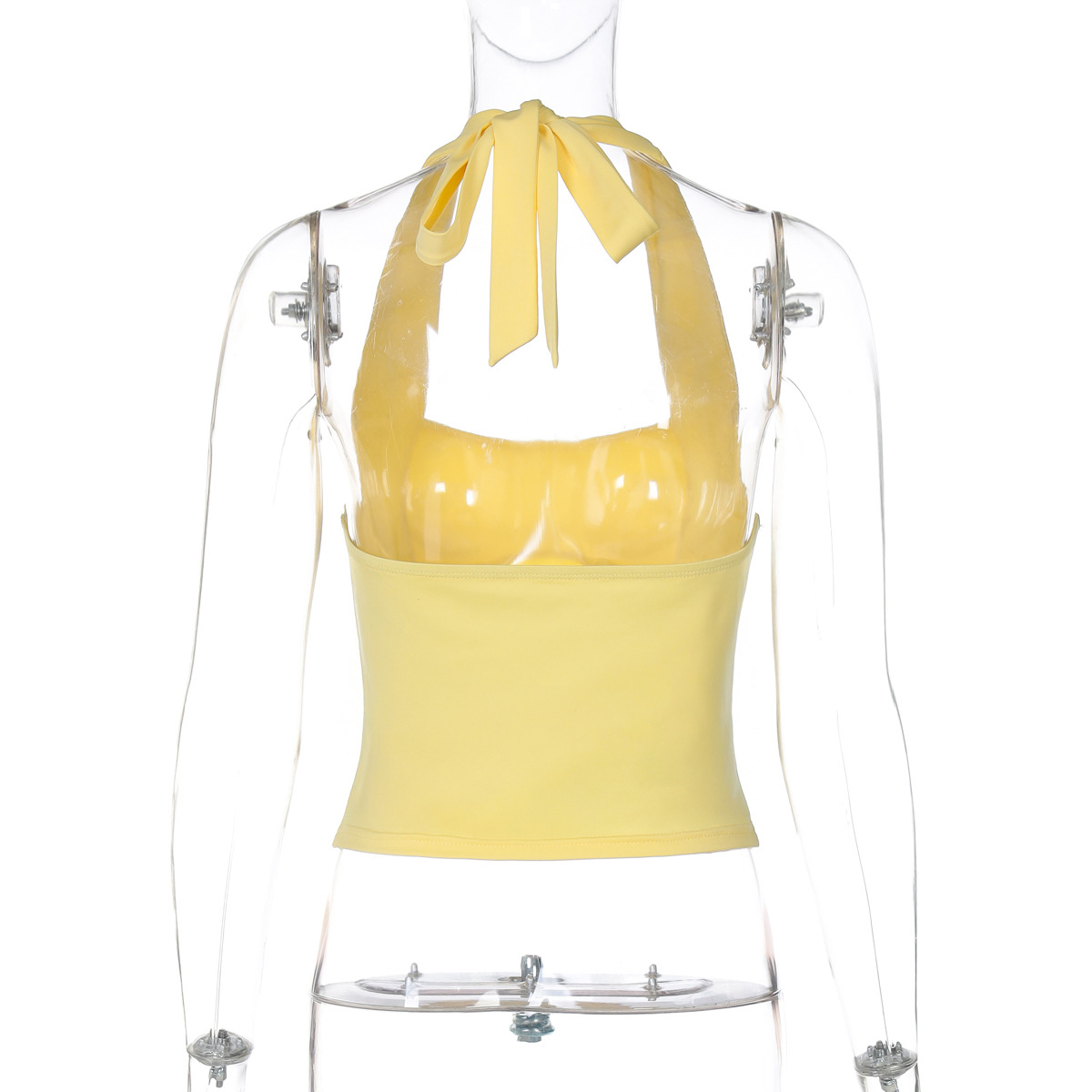 Women Clothing Summer Solid Color Tied Halter Top Short Slim Fit Tank Top