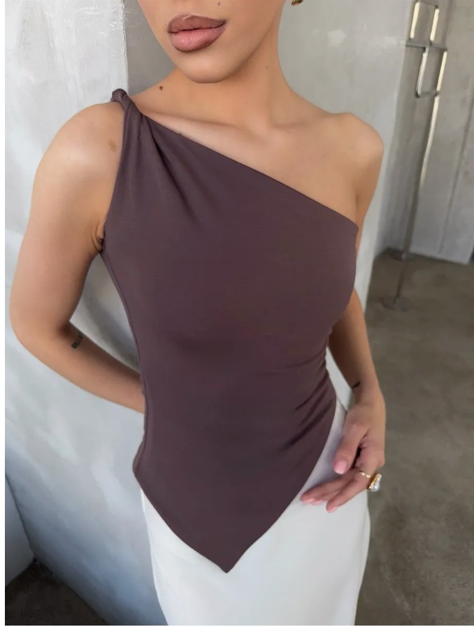 Women Clothing Sweet Spicy Vest Spring Summer Irregular Asymmetric Hem off the Shoulder Top