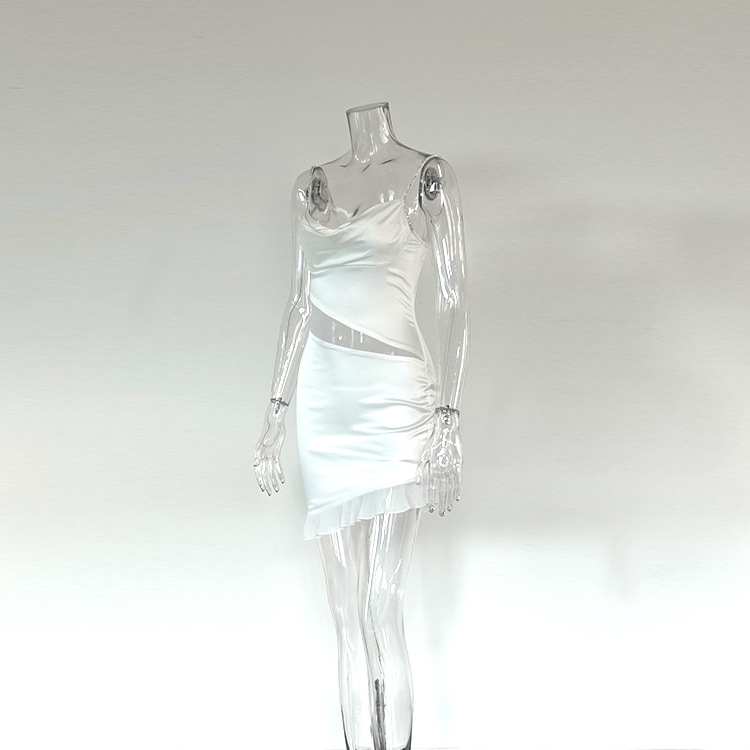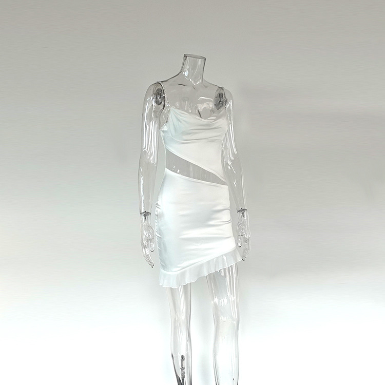 Women Clothing Swing Collar Solid Color Ruffles Hip Dress Sexy Light Diamond Sling Dress Women