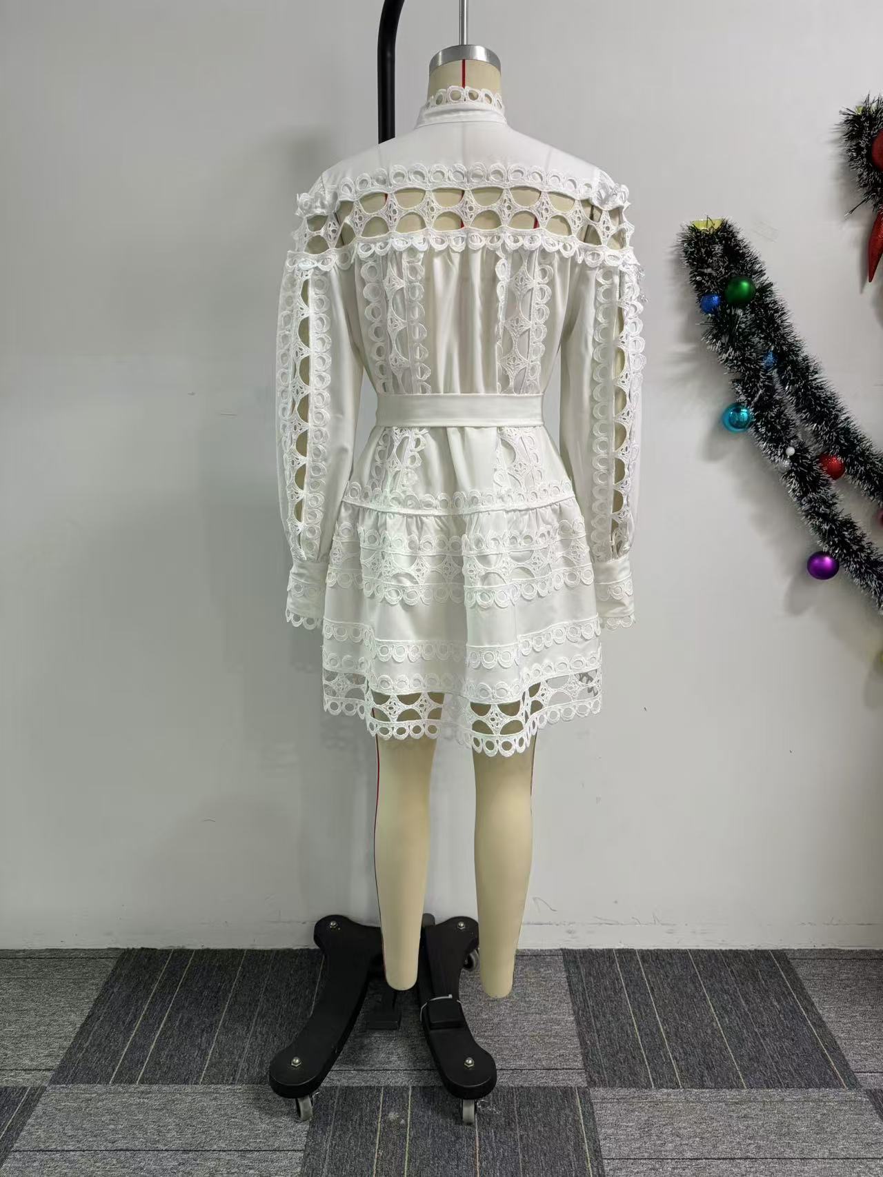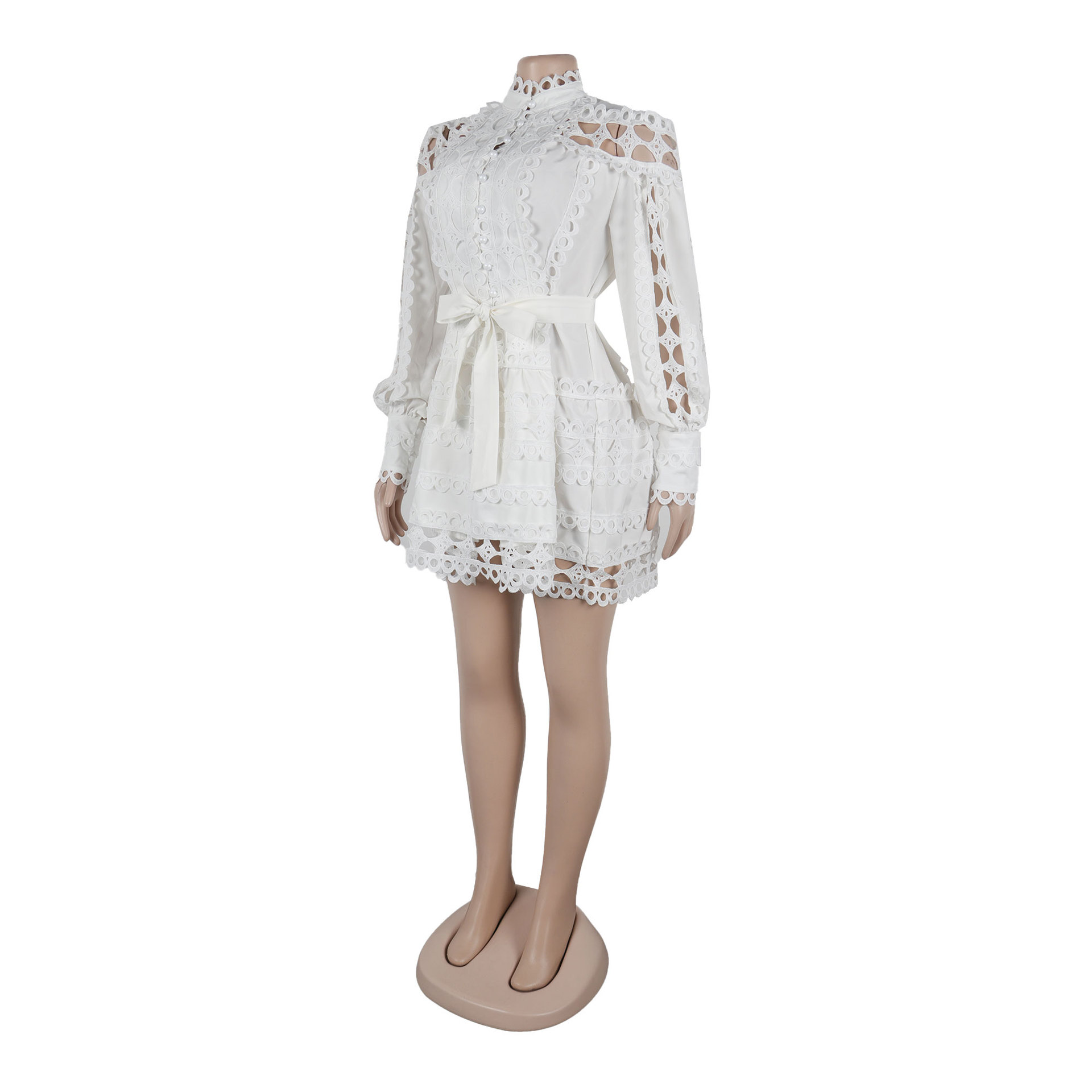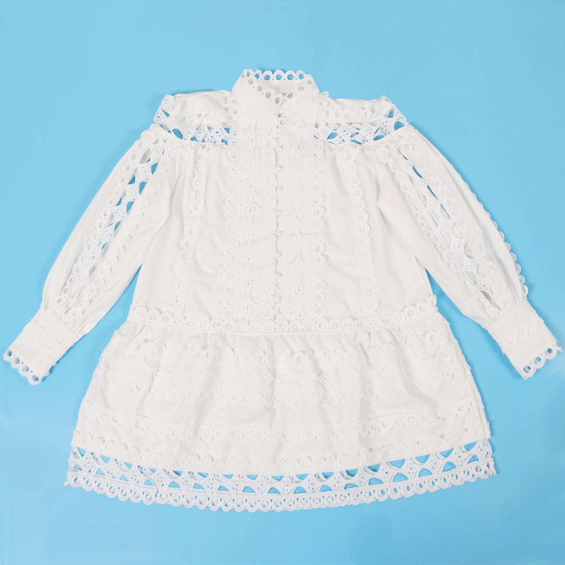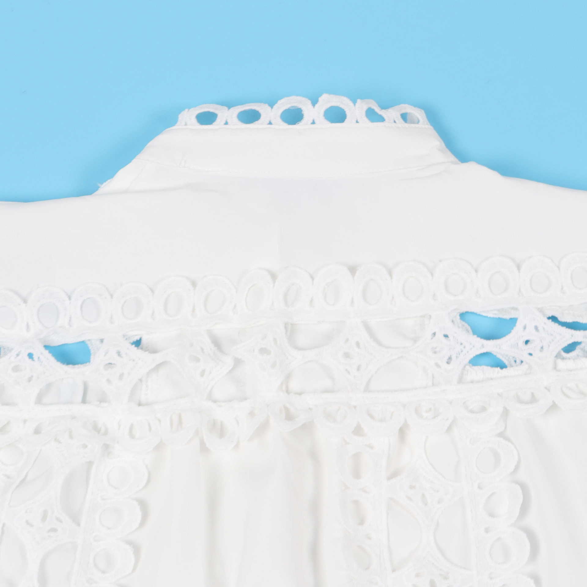 Women Lace Stitching Hollow Out Cutout Long Shirt Dress