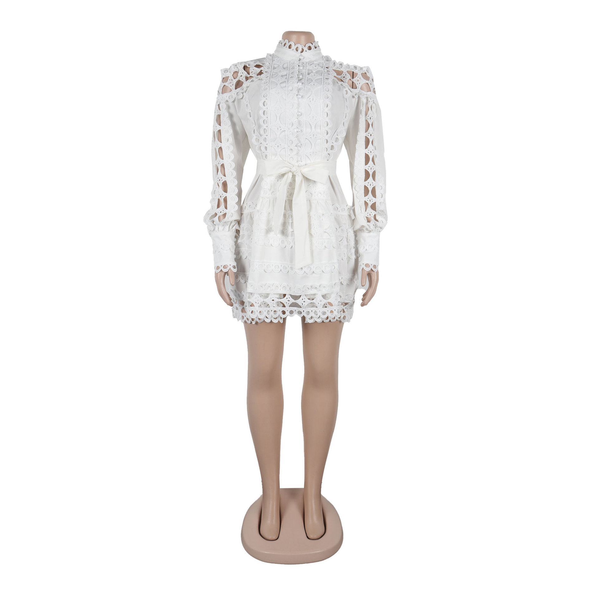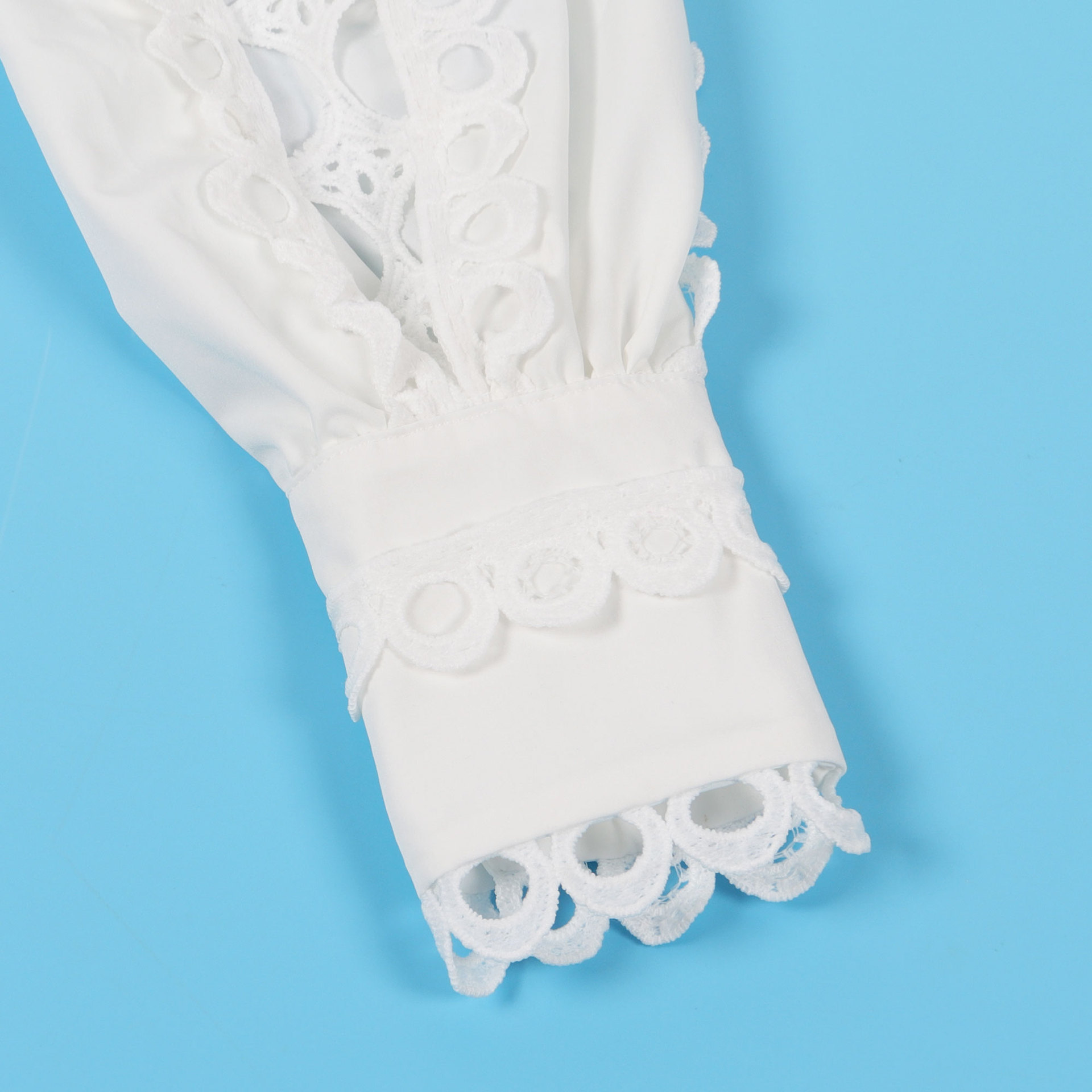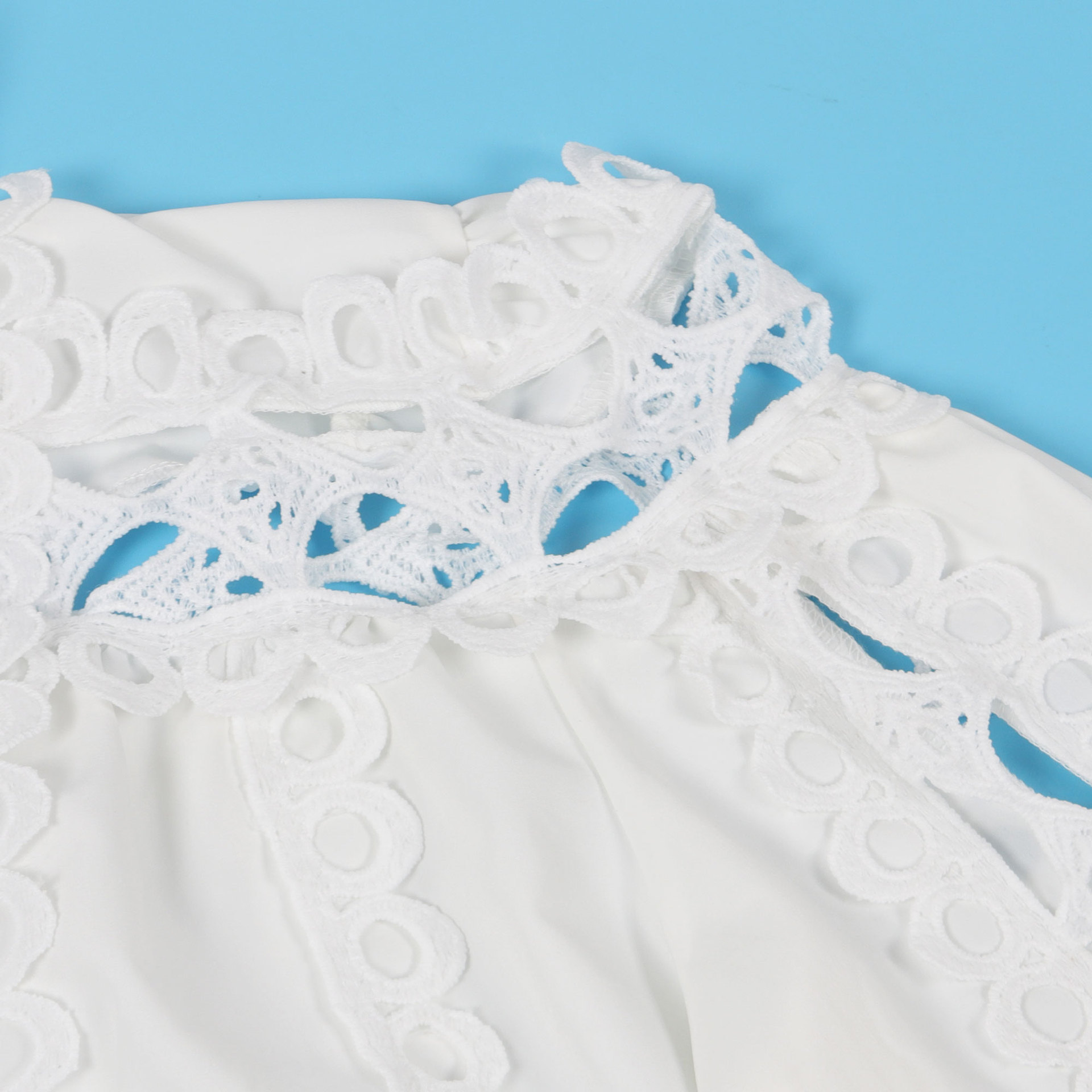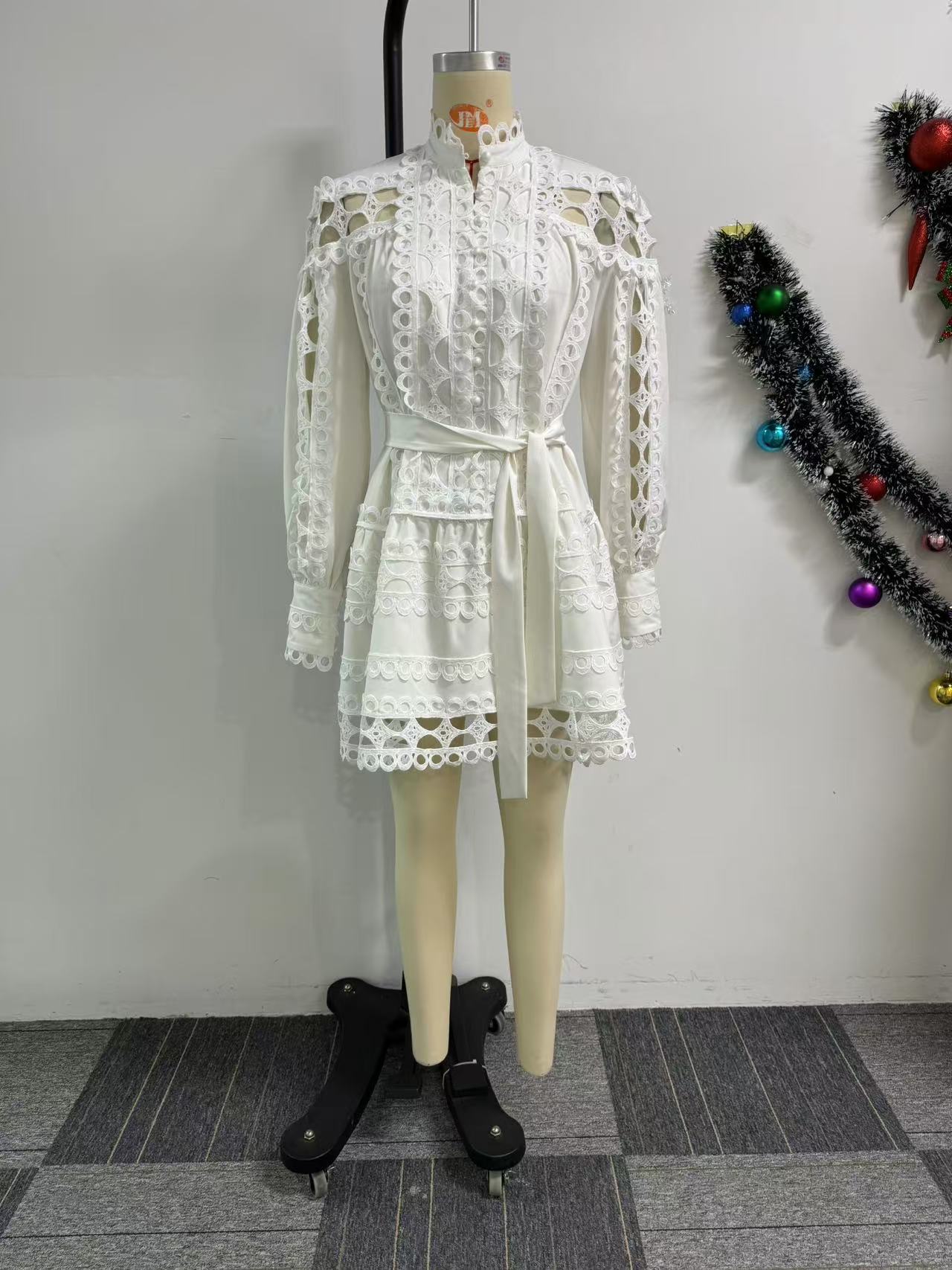 Women Lace Stitching Hollow Out Cutout Long Shirt Dress