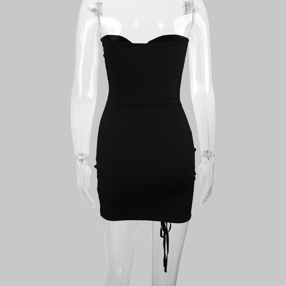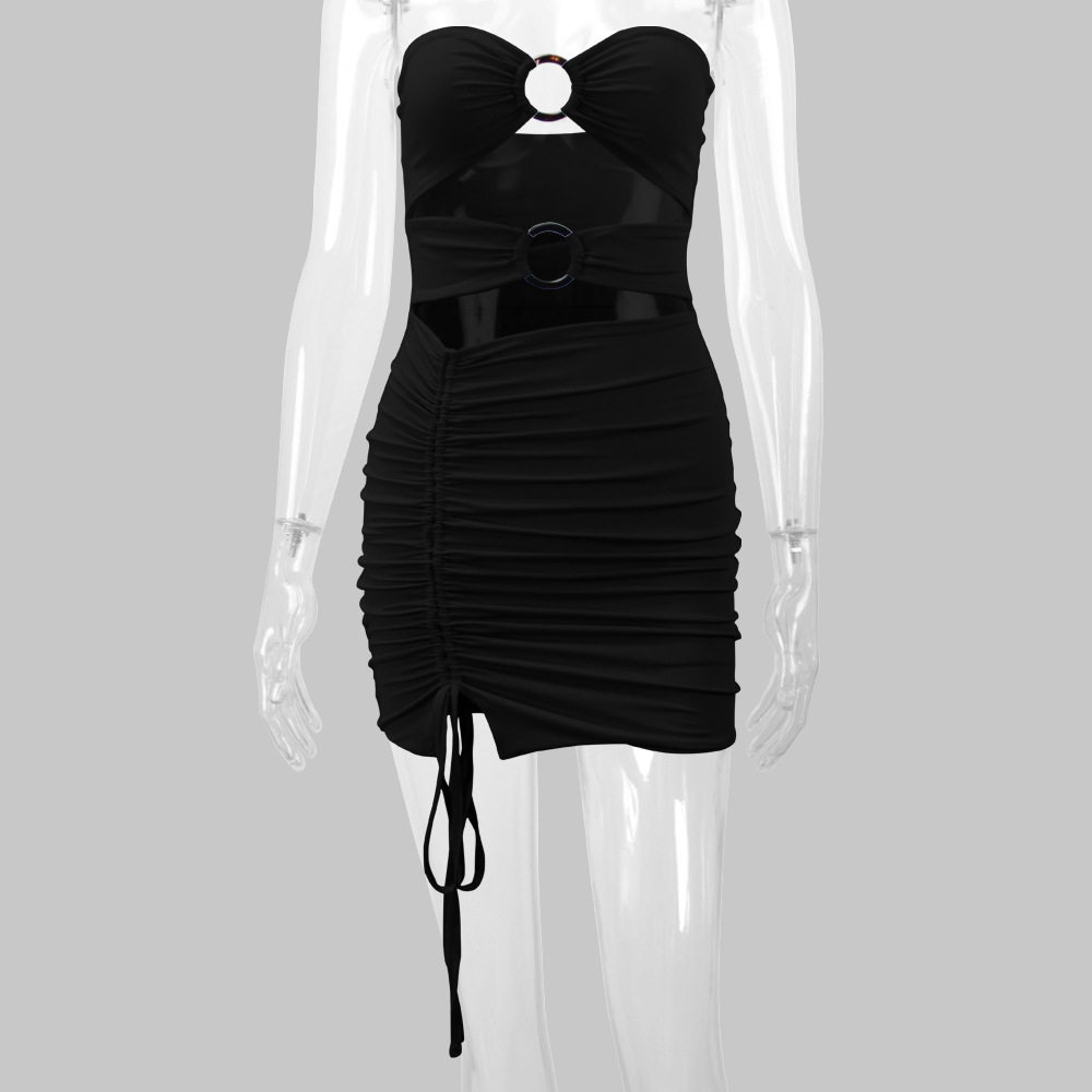 Women Spring Autumn Slim Fit Hollow Out Cutout Sleeveless Drawstring Sexy Dress