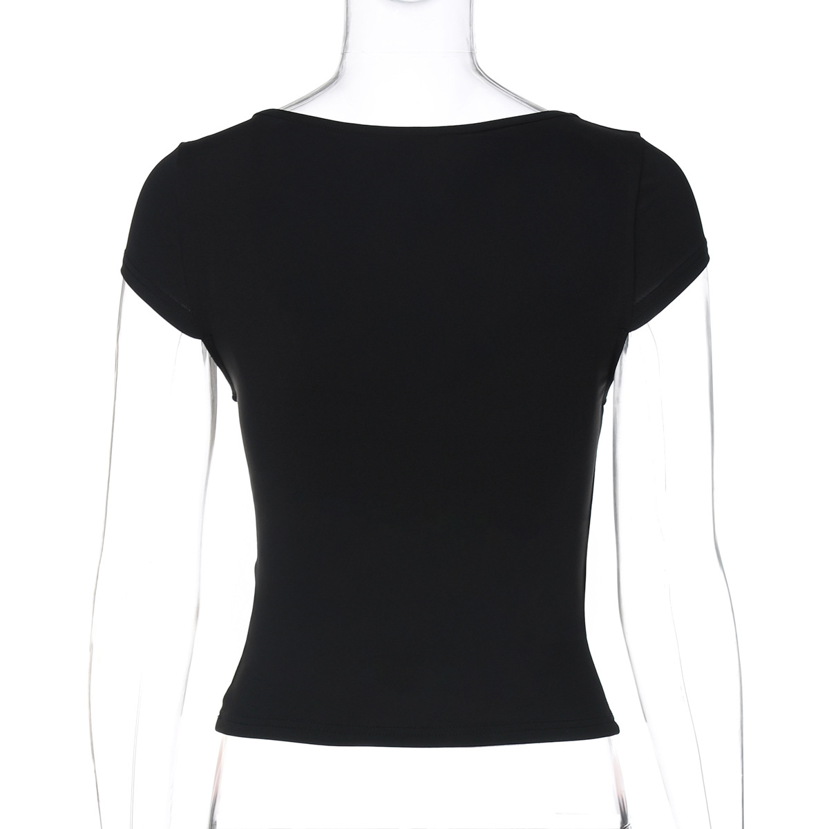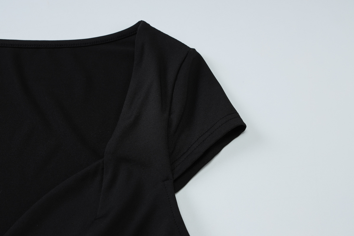 Women Summer Sexy V neck Waist Cropped Short Sleeve Top Women